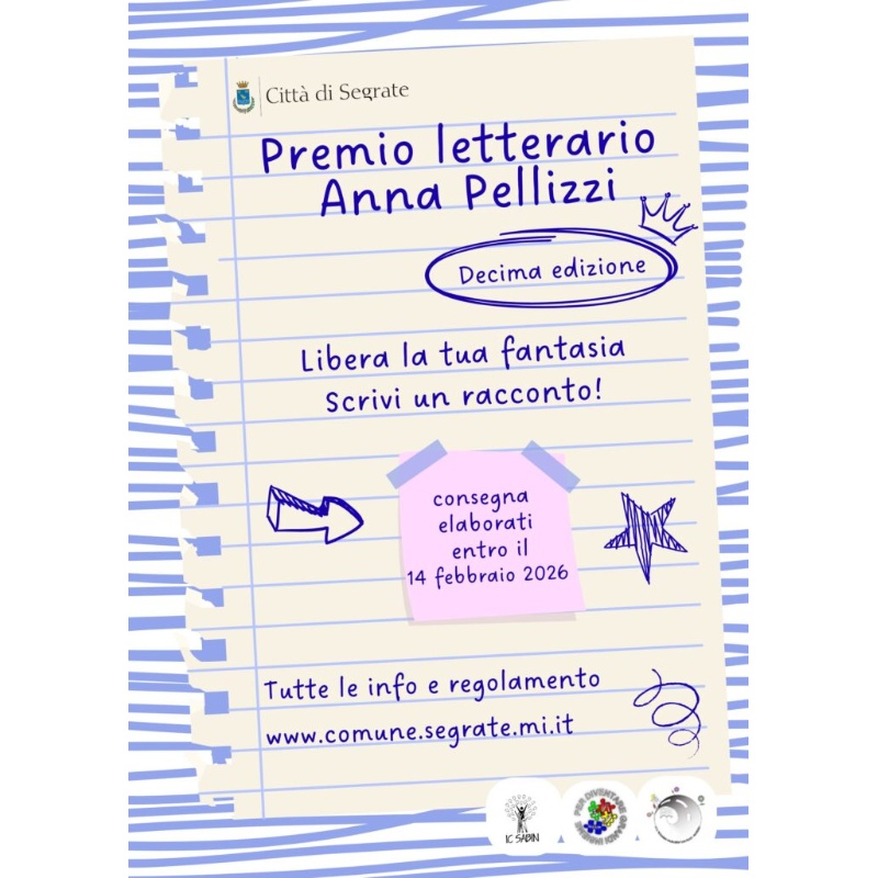 Si è in tempo fino al 14 febbraio 2026 per presentare i propri elaborati e partecipare alla decima edizione del Premio letterario “Anna Pellizzi”, indetto dall’Istituto Comprensivo A. B. Sabin, con il patrocinio del Comune, intitolato alla memoria della professoressa per tanti anni apprezzata docente di lettere nella scuola e negli altri istituti segratesi, appassionata curatrice del Progetto Lettura e del Caffè Letterario.