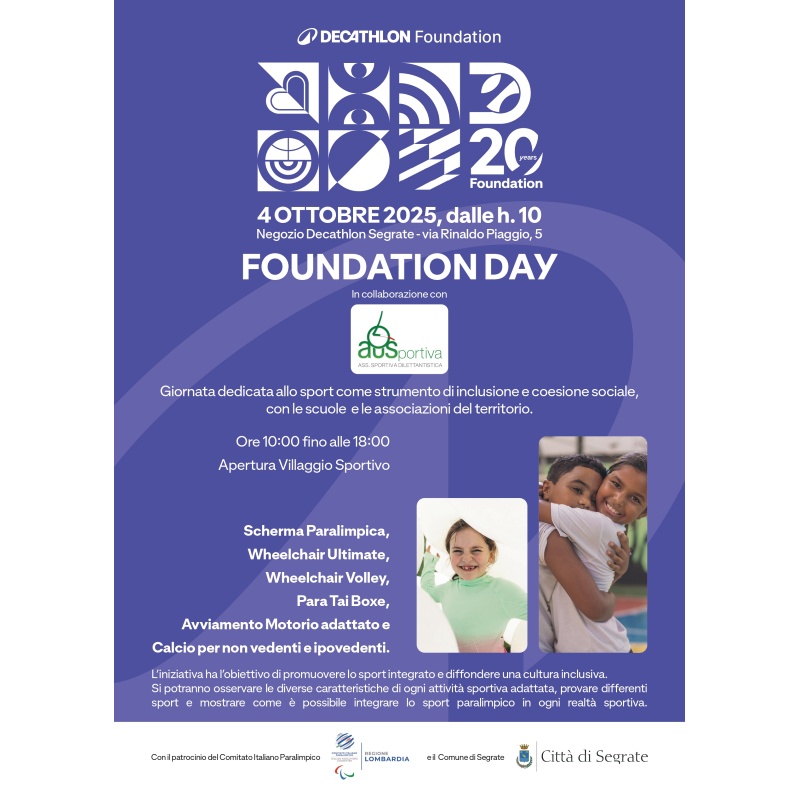venerdì 4 ottobre, dalle 10 dà appuntamento al FOUNDATION DAY nel negozio Decathlon di Segrate - Via Rinaldo Piaggio, 5.