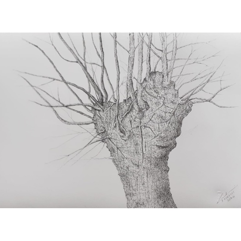 La ricerca del colore, della forma e dell’armonia è costante, e si esprime attraverso tecniche diverse – china, acquerello, olio, tecniche miste – sempre guidate da un’osservazione appassionata e accurata del mondo naturale. Le immagini che ne nascono sono originali, intense e misurate, capaci di trasmettere serenità e profondità insieme. Una parte significativa della sua produzione è realizzata con la tecnica della china, dove il bianco e nero diventa linguaggio autonomo: la linea essenziale e il contrasto netto sostituiscono il colore e restituiscono la purezza del segno, mettendo in risalto la grafica e l’equilibrio formale della composizione.