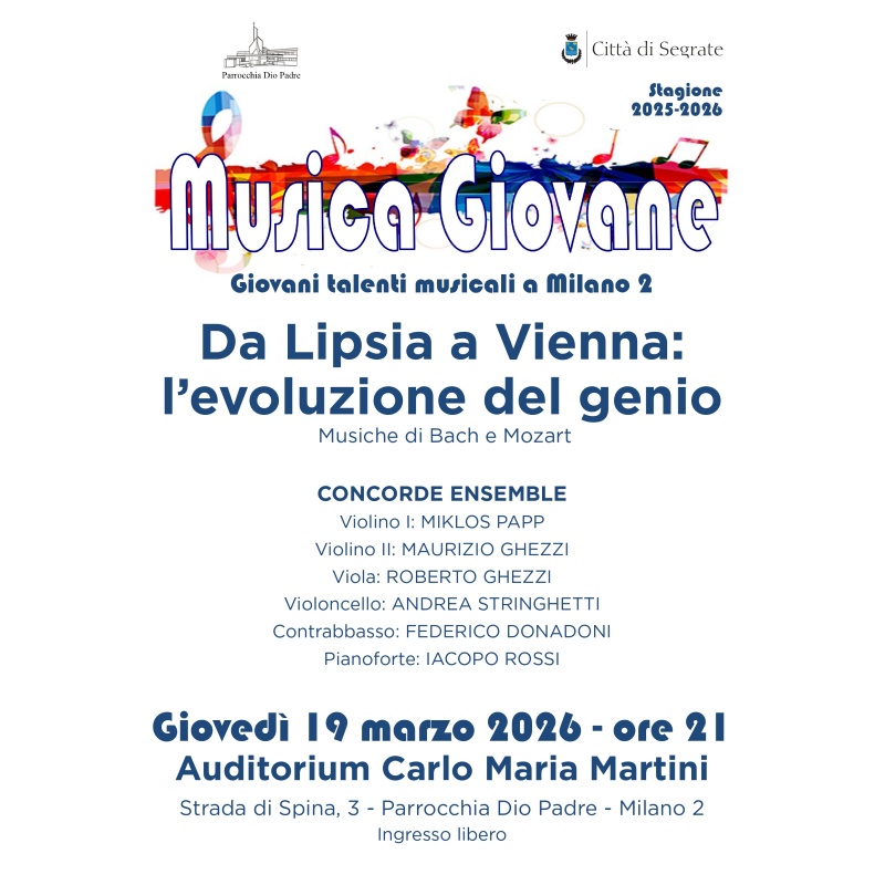 Ultimo appuntamento della rassegna “Musica Giovane”: giovani talenti musicali in concerti gratuiti nell’Auditorium della Chiesa Dio Padre di Milano 2 in Strada di Spina, 3.