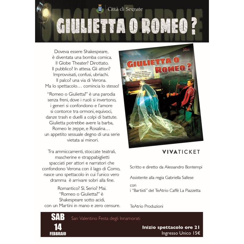 "Romeo o Giulietta?” è una parodia senza freni, dove i ruoli si invertono, i generi si confondono e l'amore si contorce tra ormoni, equivoci, danze trash e duelli a colpi di battute.