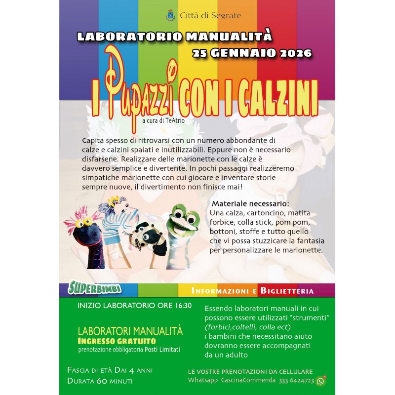 Domenica 25 gennaio alle 16.30, "I pupazzi coi calzini" - Laboratorio di manualità.