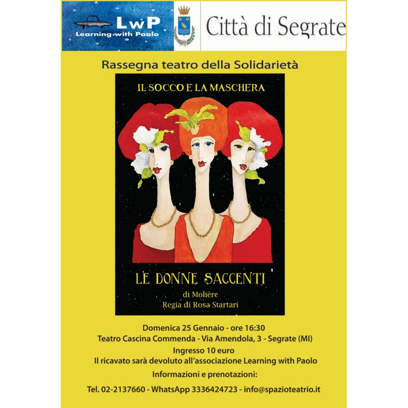 A Cascina Commenda - Via Amendola, 3, all'interno della Stagione del Teatro della Solidarietà, domenica 25 gennaio alle 16.30, la Compagnia Il Socco e la Maschera porta sul palco lo spettacolo "Le donne saccenti" di Molière. La regia è di Rosa Sartari.
