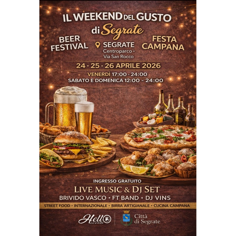 Al Centroparco - Via San Rocco, sabato 25 e domenica 26 aprile, dalle 12 alle 24, il "Weekend del Gusto" con il "Beer Festival" e la "Festa Campana". Street food internazionale, birre artigianali dai migliori birrifici italiani ed europei, cucina tipica: pizza e pizza ripiena, crocchè, cuoppi, babà, pastiera e tante altre speciaità sfiziose.