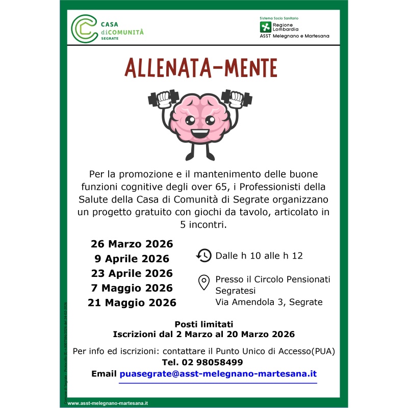 I professionisti della Salute della Casa di Comunità di Segrate organizzano un progetto gratuito con giochi da tavolo per la promozione e il mantenimento delle buone funzioni cognitive degli over 65.