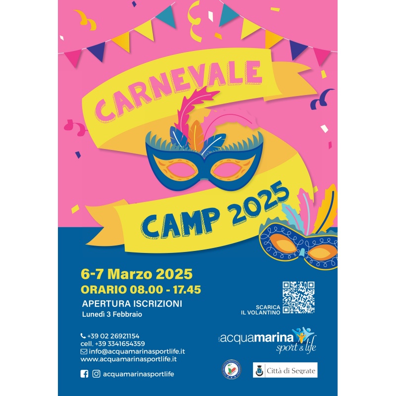 Aprono lunedì 3 febbraio le iscrizioni per il Camp che il Comune e Acquamarina Sport & Life propongono per i giorni di Carnevale, 6 e 7 marzo.
