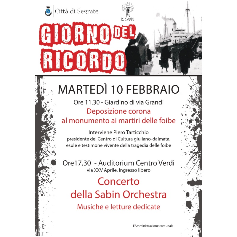 Commemorazione e concerto per il Giorno del Ricordo, in memoria dei Martiri delle foibe