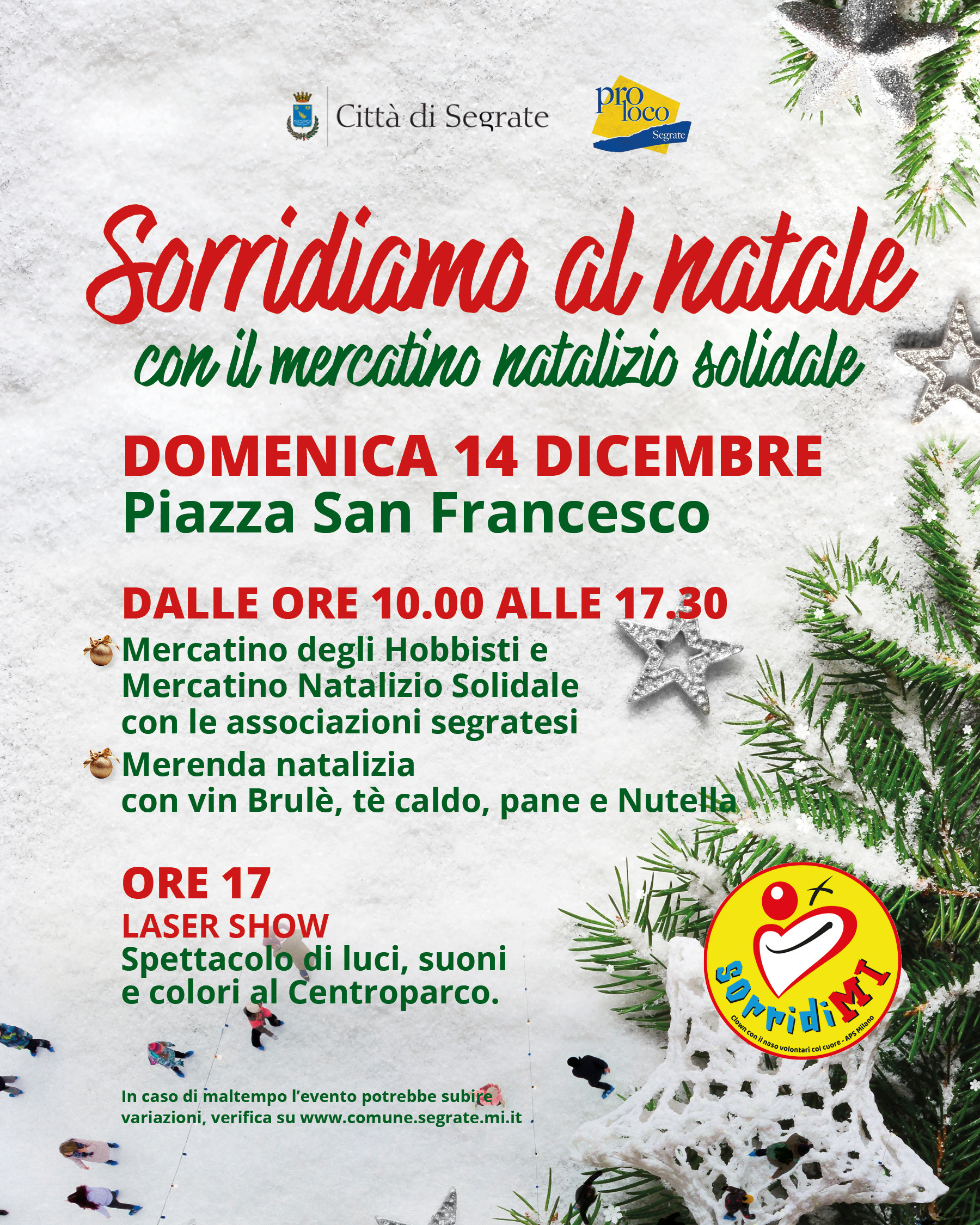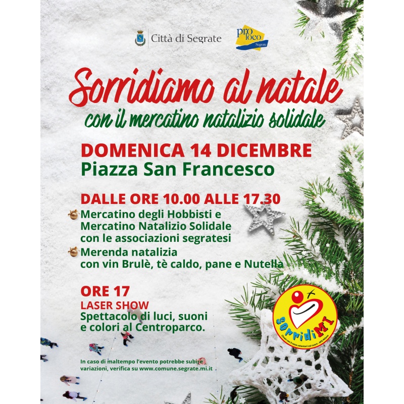 Per tutto il giorno, pista del ghiaccio, Mercatino degli hobbisti e mercatino solidale delle associazioni: "Asta benefica di biciclette" con FIAB SegrateCiclabile a favore di Emergency, "Sorridiamo al natale" con SorridiMI e molto altro.