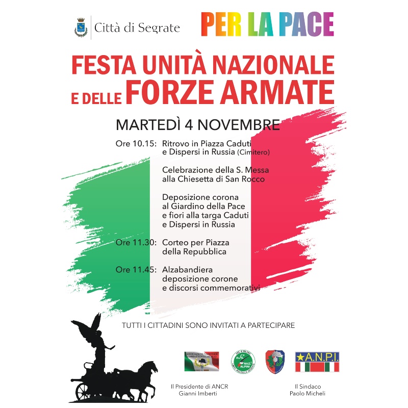Martedì 4 novembre Segrate celebra la Festa dell’Unità Nazionale e delle Forze Armate.