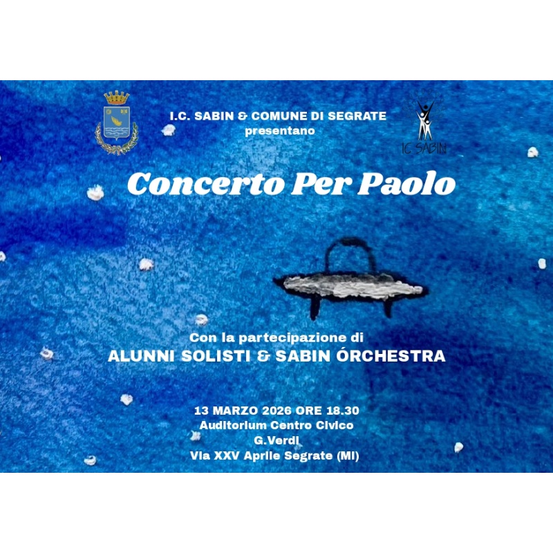 Venerdì 13 marzo alle 18.30 al Centro Verdi – Via 25 Aprile, Segrate MI, si terrà il “Concerto per Paolo”, in ricordo di Paolo Stanca, alunno della scuola troppo prematuramente scomparso.