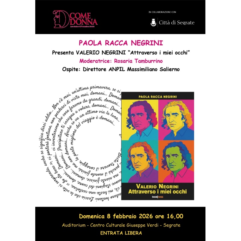 Domenica 8 febbraio alle 16 al Centro Culturale Verdi – Via 25 Aprile, Segrate MI, Paola Racca Negrini presenta Valerio Negrini "Attraverso i miei occhi".