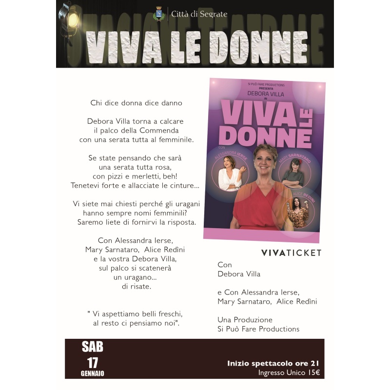 Chi dice donna dice danno. Debora Villa torna a calcare il palco della Commenda con una serata tutta al femminile.