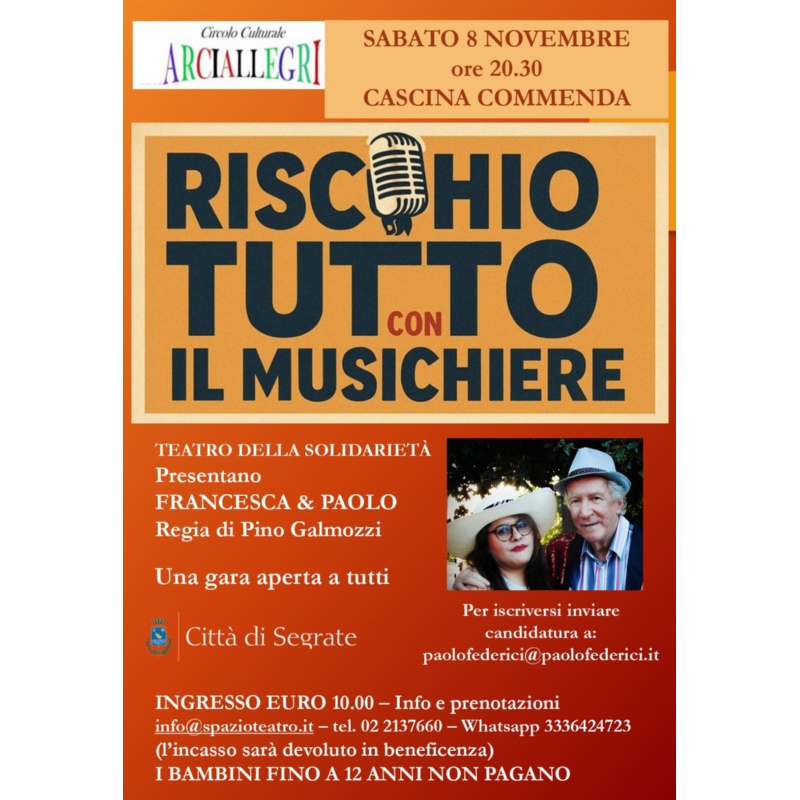All’interno della Stagione del Teatro della Solidarietà, sabato 8 novembre alle 20.30 a Cascina Commenda - Via Amendola, il Circolo Culturale Arciallegri con il Comune presenta "Rischio tutti con il Musichiere", spettacolo a premi sulla falsariga dealla storica trasmissione televisivaa.